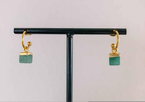 Goudkleurig ringetje met hangertje van crysolite natuursteen. Lengte: 2 cm