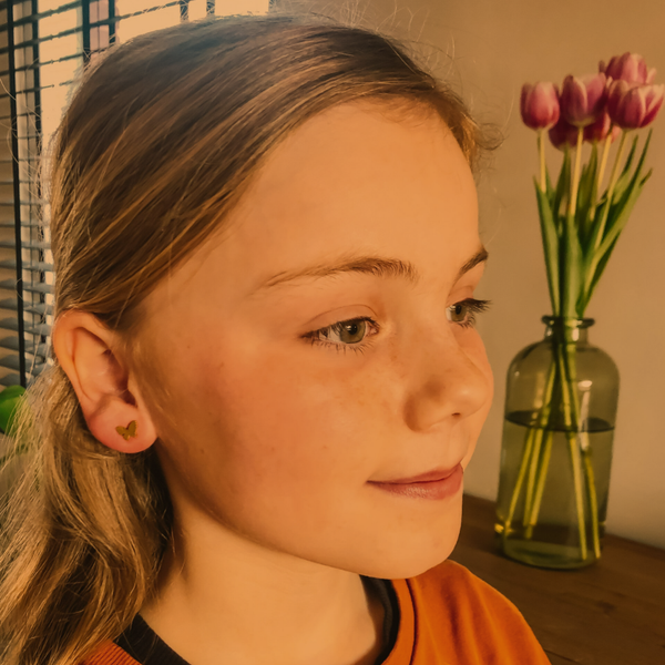 Goudkleurig of zilverkleurig oorstekertje in de vorm van een vlinder.