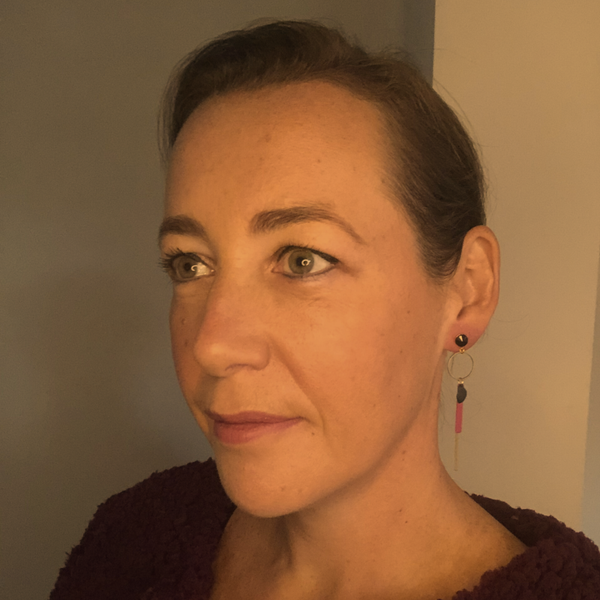Zwarte facetoorsteker, goudkleurig ringetje, zwart blaadje, rubyred en goudkleurig staafje.